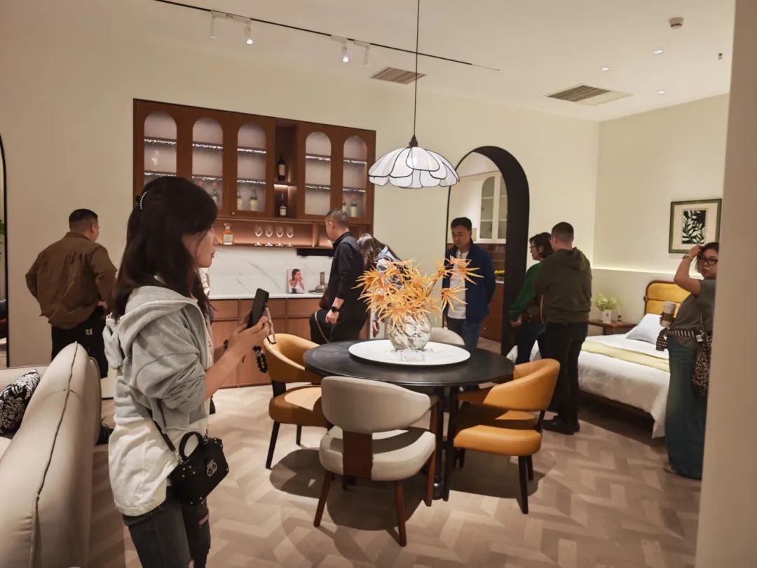 新品发布品鉴会现场,米兰体育中古全案凭借独特的空间布局,创新的时尚设计,优质的材料细节以及精心的场景营造,吸引了全国优秀经销商及业界嘉宾们的目光,他们沉浸在高级的美学世界里,感受创新与品质交织的魅力。米兰体育中古展厅里人潮涌动,众多经销商都对中古全案新品的创新设计称赞有加,现场签约不断,气氛热烈。